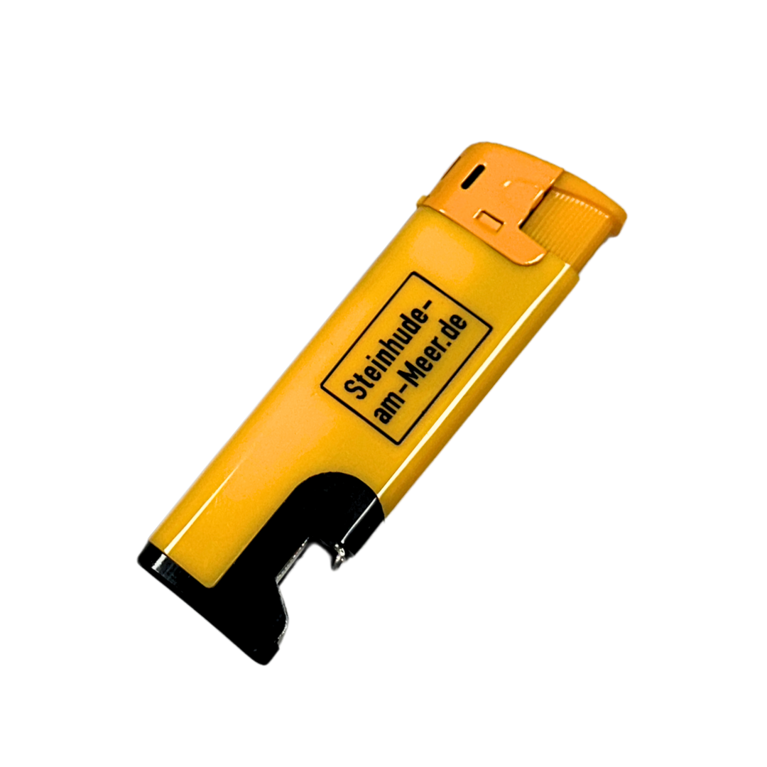 Ein Stück Steinhude für die Hosentasche. Die gelben Feuerzeuge mit dem aufgedruckten Ortsschild „Steinhude-am-Meer.de“ sind praktisch im Alltag und ein kleiner Hingucker, ob beim Grillabend, am Steg oder unterwegs.